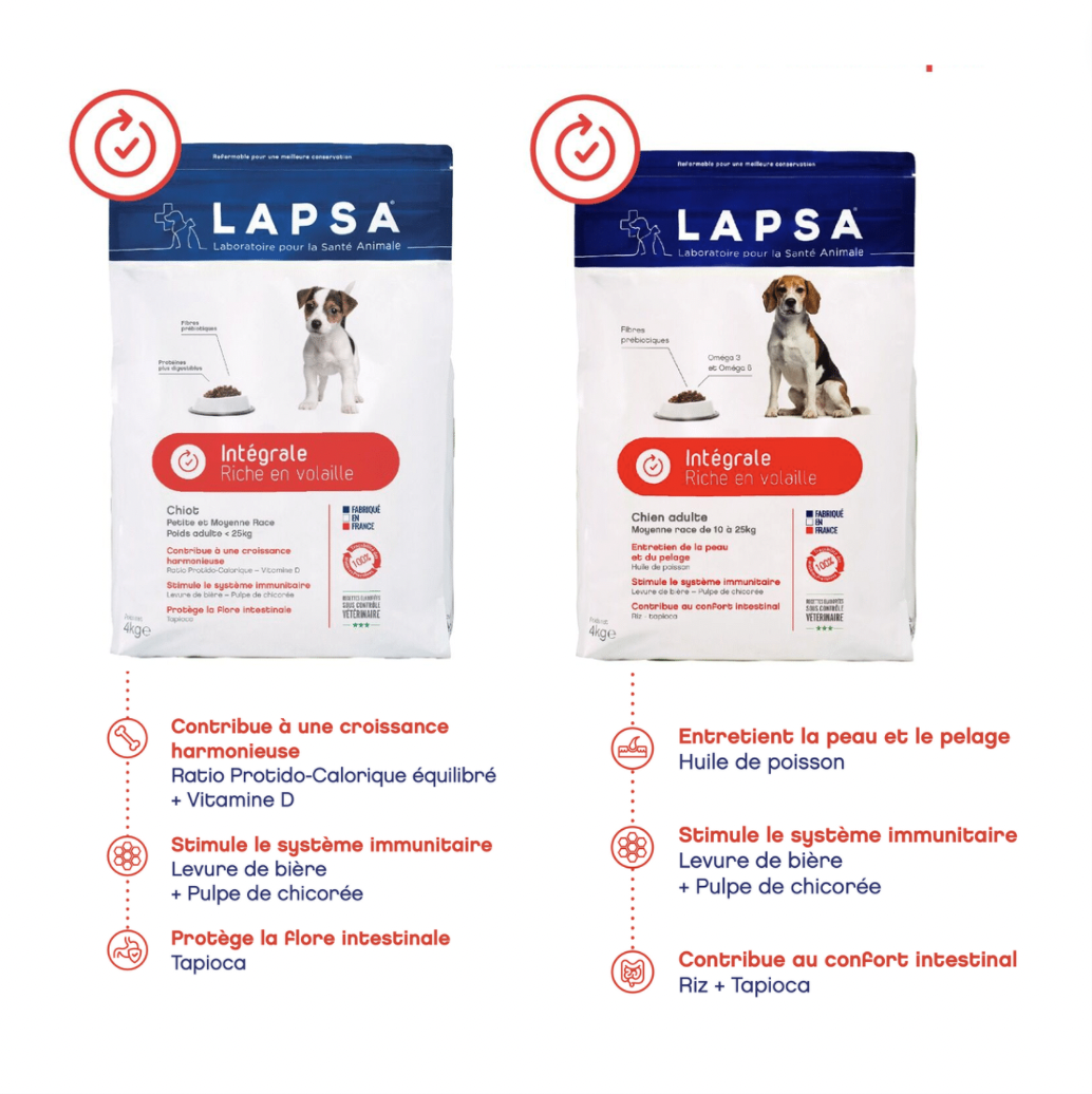 Découvrez ci-dessous les produits LAPSA intégrale pour chiens de taille moyenne :